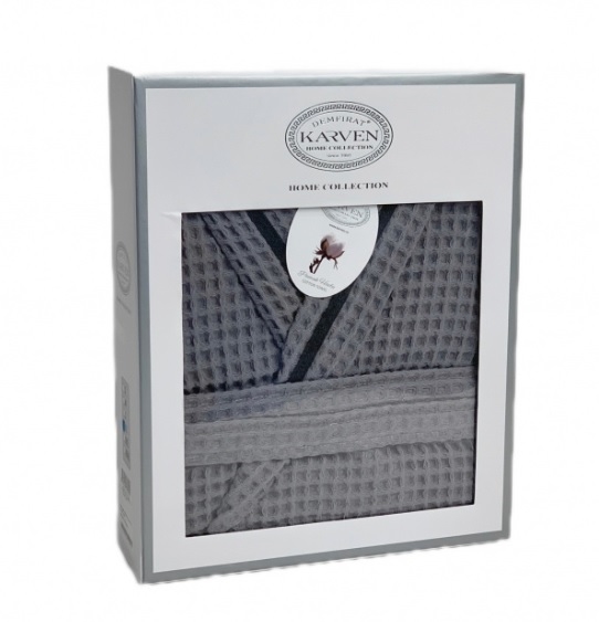 Халат КАРВЕН вафельный - это легкий и прочный халат, изготовленный из вафельной ткани. Вафельная ткань имеет рельефную поверхность, которая делает халат более воздухопроницаемым и быстро впитывают влагу.