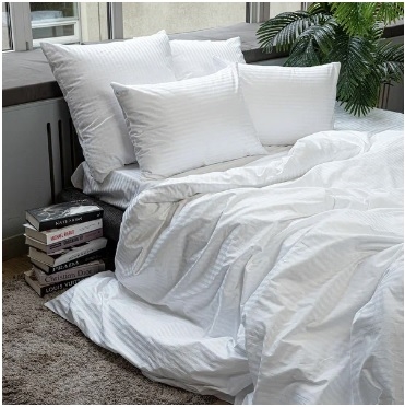 В комплект входит пододеяльник 180х220 см на молнии, простыня 200х220 см, и 2 наволочки 50х70 см.