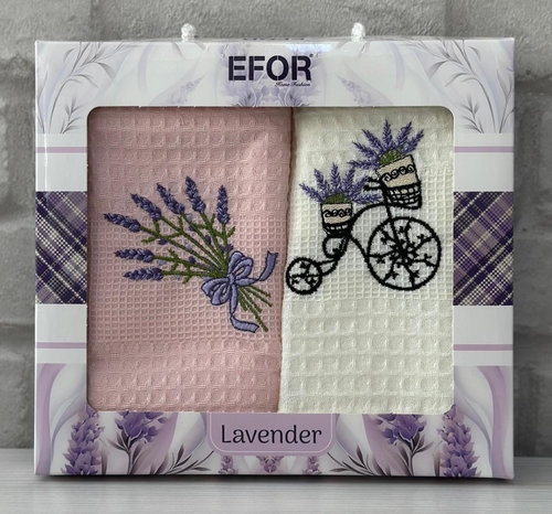 Подарочный набор из двух полотенец для кухни от турецкого бренда Efor, украшенных симпатичной вышивкой. Полотенца изготовлены из 100% хлопковой вафельной ткани средней плотности, отлично впитывают влагу и быстро сохнут. Упаковка - подарочная картонная коробочка.
