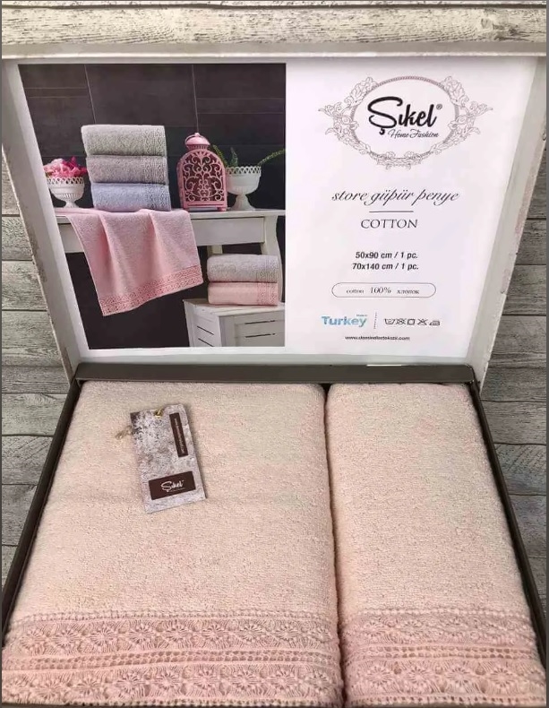 Подарочный набор полотенец для ванной 50*90+70*140 от турецкого бренда Sikel. Полотенца изготовлены из 100% хлопка высокой плотности, мягкие и приятные на ощупь, хорошо впитывают влагу.