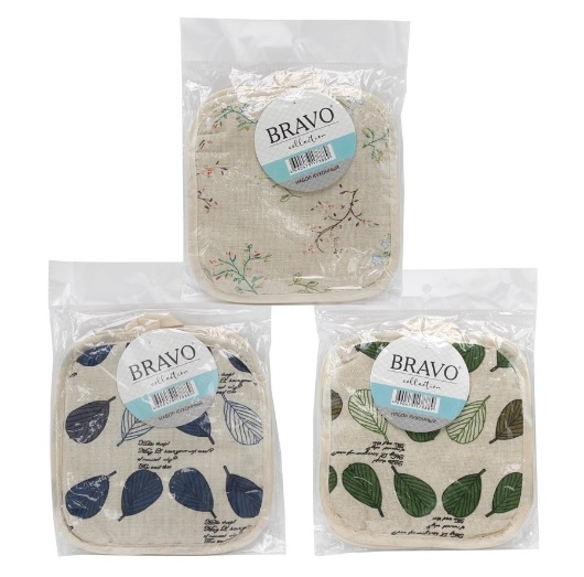 Прихватки – текстиль, позволяющий брать в руки горячие предметы и посуду. Прихватка незаменима, если нужно снять с огня кастрюлю, вытащить из духовки противень или поднять крышку на сковороде. Изготавливается данный аксессуар из различных материалов, например, из хлопчатобумажной ткани, тефлона или полиэстера. Размер: 17см*17см. Состав: 100% хлопок.