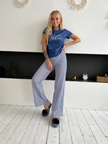 Красивая стильная лаконичная пижама с брюками в темно-синем цвете