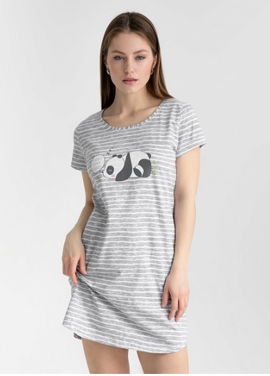 Милое домашнее платье в полоску с принтом панды от производителя Katerina (г.Кохма) - практичная одежда для дома, которая заменит домашний халат. Свободный крой обеспечит полную свободу движений, комфорт. Приятное на ощупь, к телу. Состав: 100% хлопок.