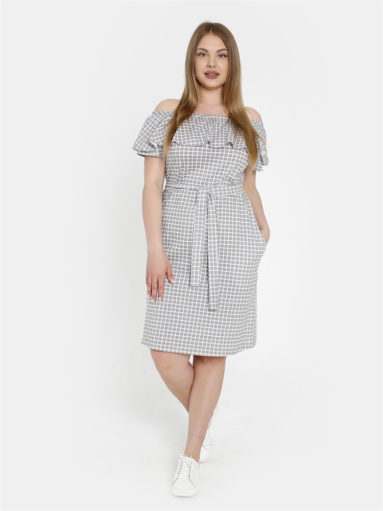 Платье женское от бренда ТОРИМЕЛ. Летний сарафан. Отпуск. Пляж. Выполнено из трикотажного полотна, 100% хлопок. Полуприлегающего силуэта, с поясом. Горловина собрана на резинку и отделана широкой оборкой. Короткий рукав, реглан. Карманы в боковом шве, добавят Вам дополнительный комфорт при использовании. По вашему желанию платье можно носить как на фото, так и обычным способом, либо на одно плечо. В этом нарядном удобном платье, Вы будете себя чувствовать комфортно в любой обстановке, дома, на даче, празднике и просто на прогулке. Состав: 100% хлопок.