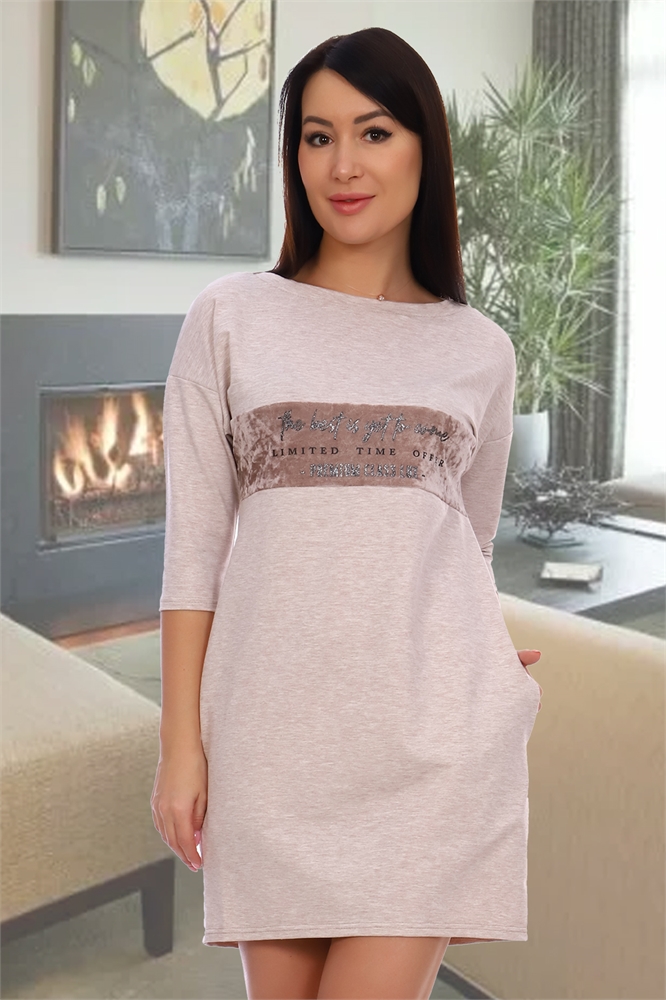 Туника полуприталенного силуэта с мерцающим принтом в виде надписи на вставке из икон-велюра от производителя Natali (г.Иваново) . Горловина в виде лодочки, обработана обтачкой. Спущенная пройма, рукав 3/4, в боковых швах удобные карманы. Универсальная модель подойдёт как для работы в офисе, так и для повседневного гардероба. Туника изготовлена из футера с лайкрой пенье - это один из самых деликатных, высококачественных хлопковых материалов с добавлением полиэстера и лайкры. Мягкий, шелковистый, гладкий на ощупь, приятный к телу, прочный, эластичный материал, практически не мнётся. Состав: 70% хлопок, 24% п/э, 6% лайкра.